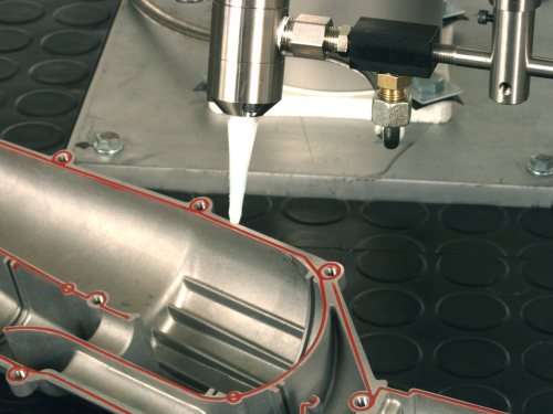 Dağıtım atım büyüklükleri küçüldüğü zaman ve/veya ürünlerin (örneğin) dağıtıcı iğneye temas etmemesi gerektiği zaman, püskürtme en olası çözümdür. Yapıştırıcılar, gresler, yağlar, lehim pastaları ve diğer birçok sıvı, en yüksek hızda ve doğrulukta çok sağlam ve düşük maliyetli olarak tasarlanmış piezo sürümlü dağıtıcı vana ile uygulanır. Bu vana elektriksel olarak harekete geçirilir.